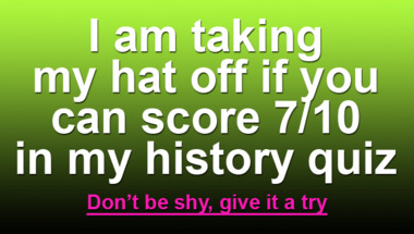If you can answer "In 1964, a world water speed record is set by Donald Campbell who is from what Europe.." and maybe even "Battles broke out between Turkey and Greece on which island in 1958?" there is a good chance that you're going to beat the average score of 6/10 in this History quiz