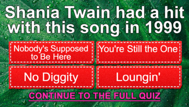 5/10 is the score to beat in this trivia quiz to put yourself over the average quiz taker. But you're probably going to be able to answer questions "Shania Twain had a hit with this song in 1999" and "Michael Jackson had a hit with this song in 1993" easy!