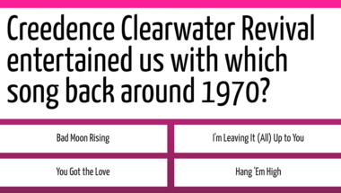 5/10 is what people on average are scoring in this trivia quiz so far. Are you ready to answer questions like "Creedence Clearwater Revival entertained us with which song back around 1970?" and "Queen entertained us with which song back around 1979?"