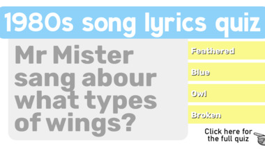If you can answer "Mr Mister sang abour what types of wings?" and maybe even "The Clash said "It's always tease, tease, tease, You're happy when I'm on my" what?" there is a good chance that you're going to beat the average score of 6/10 in this trivia quiz