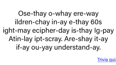 A trivia quiz that's entertaining and covers a range of topics.