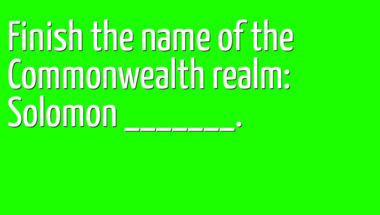 In this fun Geography quiz we're going to ask questions like "Finish the name of the Commonwealth realm: Solomon _______." and "Which continent is the Sahara Desert located?".