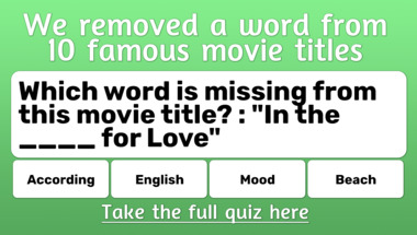 If you can answer "Which word is missing from this movie title? : "____ and the Beast"" and maybe even "Which word is missing from this movie title? : "In the ____ for Love"" there is a good chance that you're going to beat the average score of 6/10 in this Movies missing a word quiz