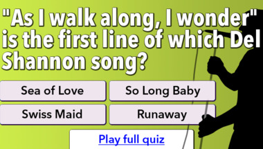 6/10 is the score to beat in this 1960s Song Lyrics quiz to put yourself over the average quiz taker. But you're probably going to be able to answer questions "What line follows "Cupid, draw back your bow" in the Sam Cooke song?" and "The Searchers were singing about sugar and what in 1963?" easy!