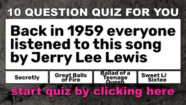 6/10 is what people on average are scoring in this 1950s Hits quiz so far. Are you ready to answer questions like "Back in 1959 everyone listened to this song by Jerry Lee Lewis" and "Let us see if you remember this song by Paul Anka placed on the hit lists of 1958"