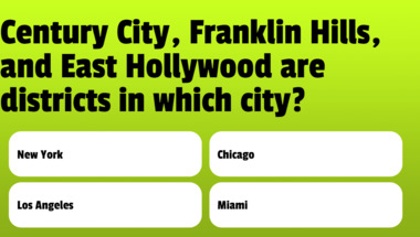 Look forward to questions like "Putney, Hackney, and Islington are areas in which city?" and "Century City, Franklin Hills, and East Hollywood are districts in which city?"