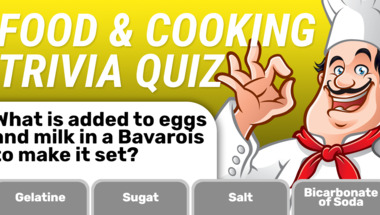 4/10 is what people on average are scoring in this trivia quiz so far. Are you ready to answer questions like "What is added to eggs and milk in a Bavarois to make it set?" and "What comes after Moscow in the name of a vodka cocktail?"