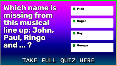 If you can answer "Which name is missing from this musical line up: John, Paul, Ringo and ... ?" and maybe even "Breathing through a tube that touches the surface while swimming is known as what?" there is a good chance that you're going to beat the average score of 5/10 in this trivia quiz