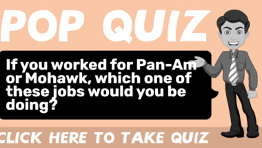 Look forward to questions like "If you worked for Pan-Am or Mohawk, which one of these jobs would you be doing?" and "Which of the following is the display device for computer?"