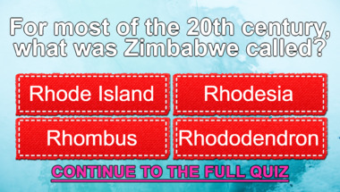 In this fun trivia quiz we're going to ask questions like "Which of the following has the highest percentage of Vitamin C content?" and "For most of the 20th century, what was Zimbabwe called? ".