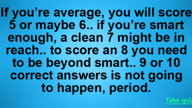 6/10 is the score to beat in this trivia quiz to put yourself over the average quiz taker. But you're probably going to be able to answer questions "What foodstuff is usually carved to make a lantern on Halloween?" and "What is 77 minus 22?" easy!