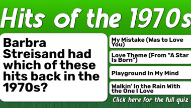 In this fun trivia quiz we're going to ask questions like "John Denver had which of these hits back in the 1970s?" and "Barbra Streisand had which of these hits back in the 1970s?".