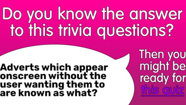 4/10 is what people on average are scoring in this trivia quiz so far. Are you ready to answer questions like "In 1999, Joe DiMaggio died, at which sport had he been one of the all time greats?" and "Adverts which appear onscreen without the user wanting them to are known as what?"