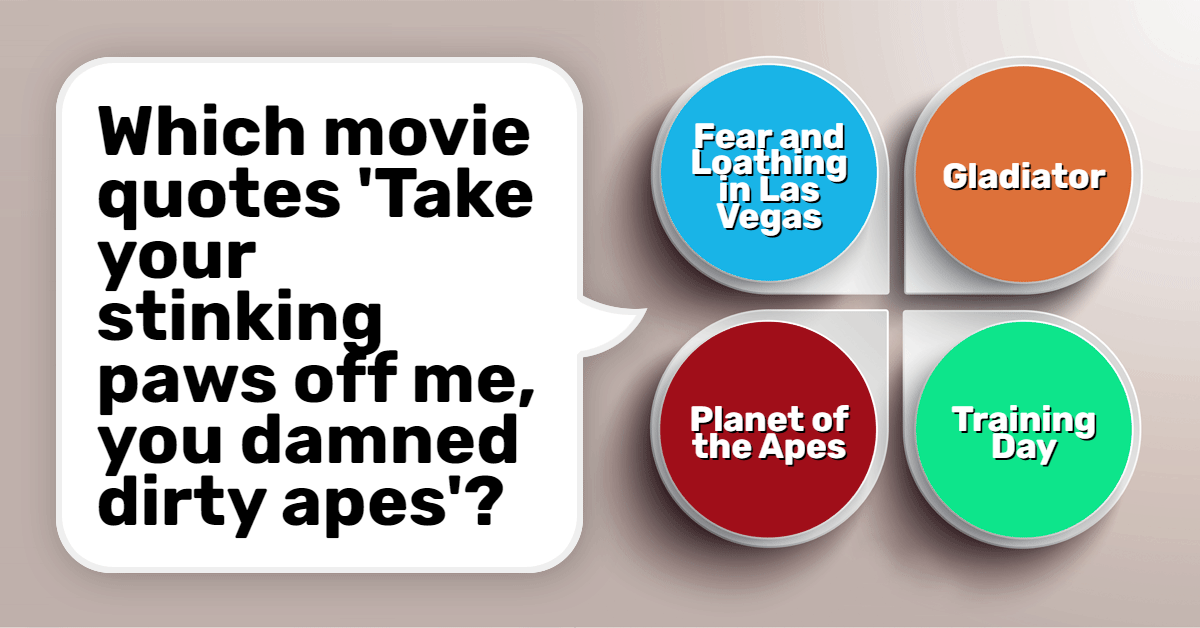 Which movie quotes 'Take your stinking paws off me, you damned dirty apes'?