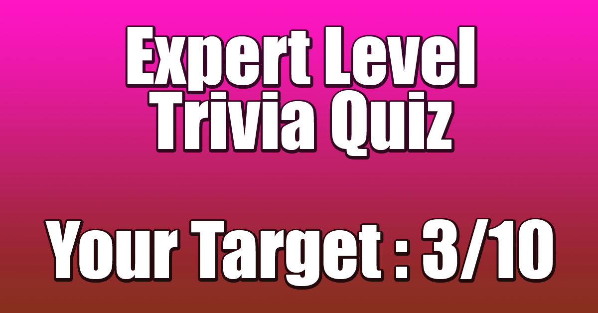 Difficulty : Hard Get 3/10 correct to pass the quiz