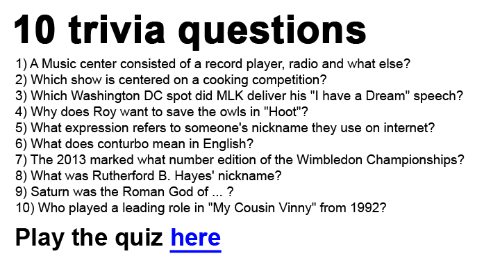 It is time for a trivia quiz