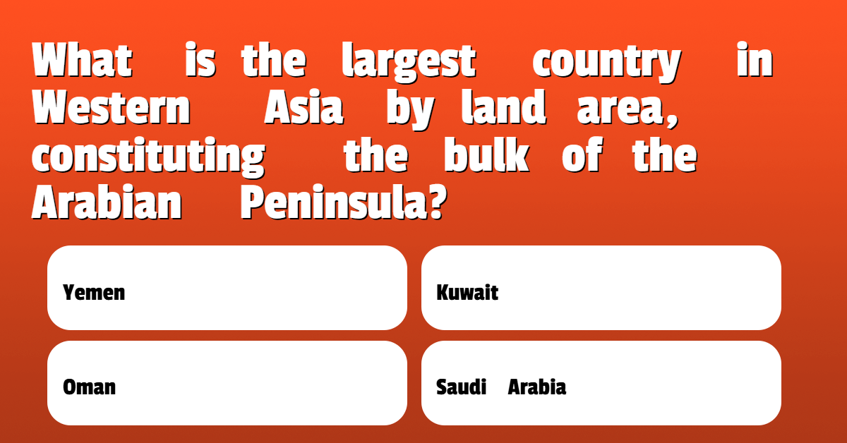 What is the largest country in Western Asia by land area, constituting the bulk of the Arabian Peninsula?