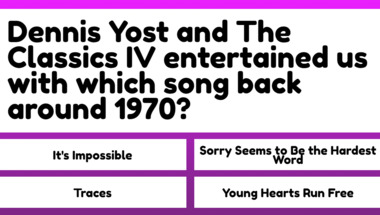 4/10 is what people on average are scoring in this trivia quiz so far. Are you ready to answer questions like "The Carpenters entertained us with which song back around 1975?" and "The Kinks entertained us with which song back around 1971?"