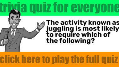 In this fun trivia quiz we're going to ask questions like "What goes in a kangaroo's pouch?" and "The activity known as juggling is most likely to require which of the following?".