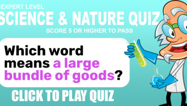 If you can answer "Which word means "a large bundle of goods"?" and maybe even "What type of molecule is CH3OH?" there is a good chance that you're going to beat the average score of 4/10 in this Science quiz
