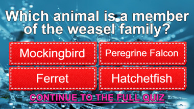 6/10 is the score to beat in this Science quiz to put yourself over the average quiz taker. But you're probably going to be able to answer questions "What is the name of the heaviest land animal living in North America?" and "Which animal is a member of the weasel family?" easy!