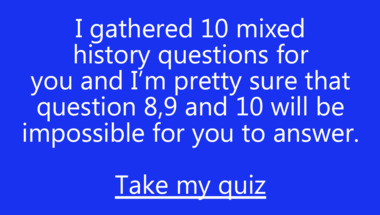 6/10 is the score to beat in this trivia quiz to put yourself over the average quiz taker. But you're probably going to be able to answer questions "During which war was an atomic bomb dropped on Hiroshima?" and "In which country did the 1761 'Battle of Villinghausen' take place?" easy!