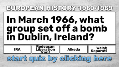 Look forward to questions like "In February of 1960, Queen Elizabeth II of the United Kingdom issued an order stating.." and "In March 1966, what group set off a bomb in Dublin, Ireland?"