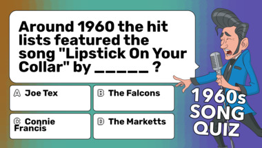 7/10 is what people on average are scoring in this trivia quiz so far. Are you ready to answer questions like "Around 1960 the hit lists featured the song "Lipstick On Your Collar" by _____ ?" and "Around 1965 the hit lists featured the song "I Want to Hold Your Hand" by _____ ?"