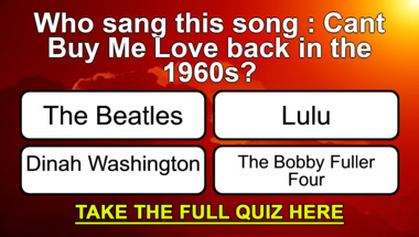 7/10 is what people on average are scoring in this trivia quiz so far. Are you ready to answer questions like "Who sang this song : "Can't Buy Me Love" back in the 1960s?" and "Who sang this song : "You've Lost That Lovin' Feelin'" back in the 1960s?"