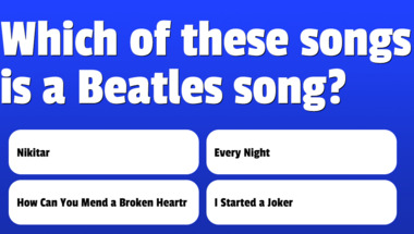In this fun trivia quiz we're going to ask questions like "Which of these songs is a Beatles song?" and "Which of these songs is a Beatles song?".