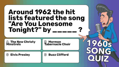 If you can answer "Around 1962 the hit lists featured the song "Are You Lonesome Tonight?" by _____ ?" and maybe even "Around 1961 the hit lists featured the song "Cathy's Clown" by _____ ?" there is a good chance that you're going to beat the average score of 6/10 in this trivia quiz