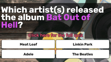 Look forward to questions like "Which artist(s) released the album "Bat Out of Hell"?" and "Which artist(s) released the album "Bad"?"