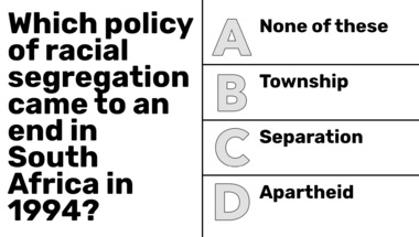 6/10 is what people on average are scoring in this trivia quiz so far. Are you ready to answer questions like "According to the nursery rhyme, what has Little Bo Peep lost?" and "Which policy of racial segregation came to an end in South Africa in 1994?"