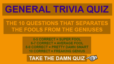 If you can answer "What word means the place to which a person travels?" and maybe even "Who played Mork in Mork and Mindy?" there is a good chance that you're going to beat the average score of 6/10 in this General Trivia quiz